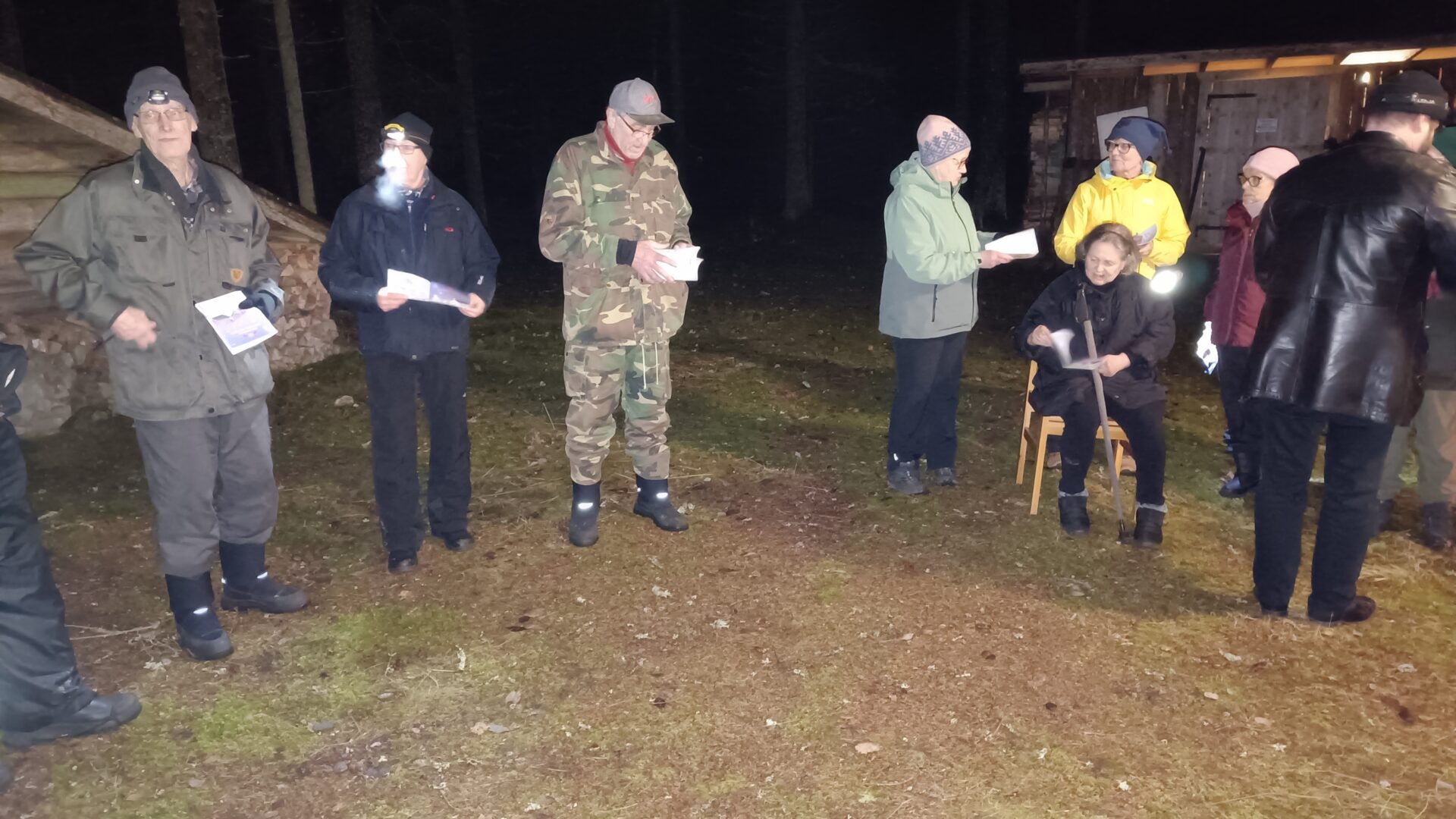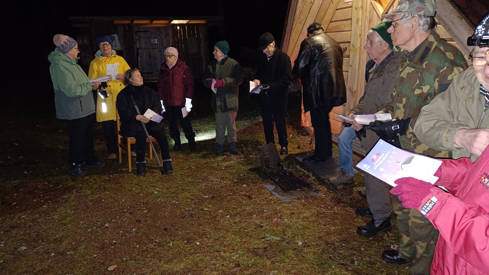Kokoonnuttiin ulos kodan edustalle kuuntelemaan pastori Lauri Palon jouluisia sanoja ja laulamaan tuttuja joululauluja.
