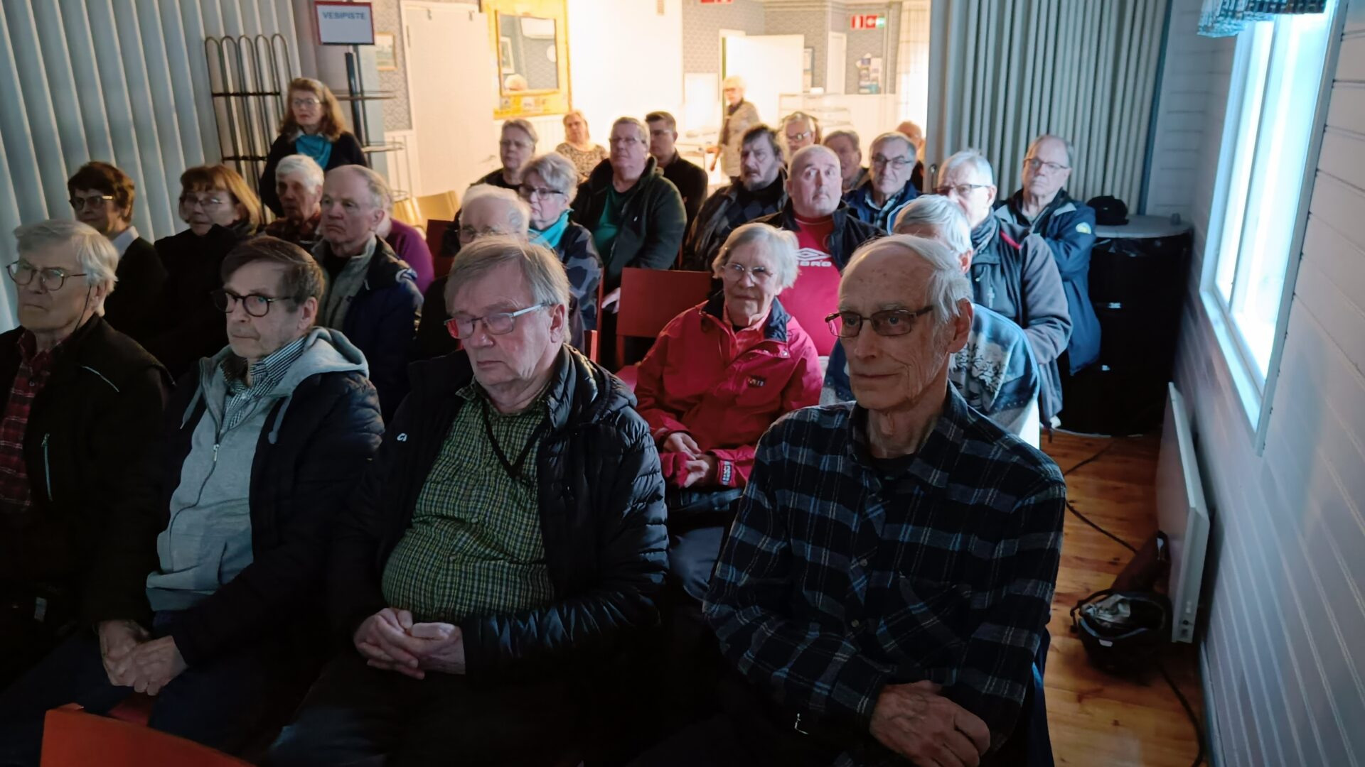 Kokousyleisö tarkkaavaisena kuunnellen mielenkiintoista esitystä Aurinkolinnan historiasta.